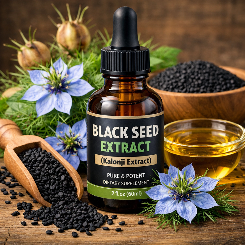 Black seed extract is rich in antioxidants and essential fatty acids that strengthen hair roots and reduce breakage. It supports healthier hair growth, improves scalp vitality, and helps protect hair from environmental stress.