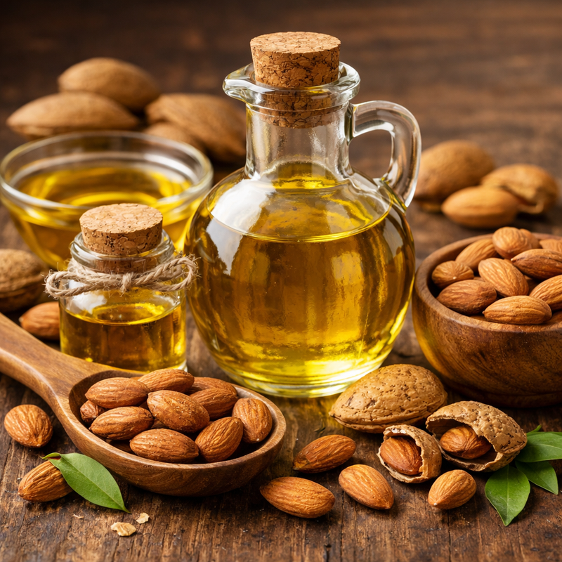 Almond oil deeply nourishes and softens dry, rough hair strands. Rich in vitamins and minerals, it smoothens frizz, improves texture, and strengthens hair from root to tip.